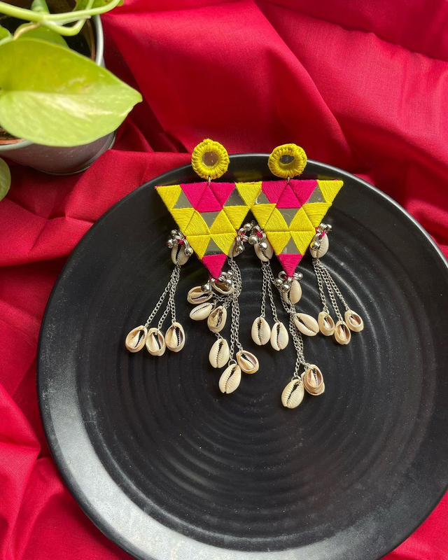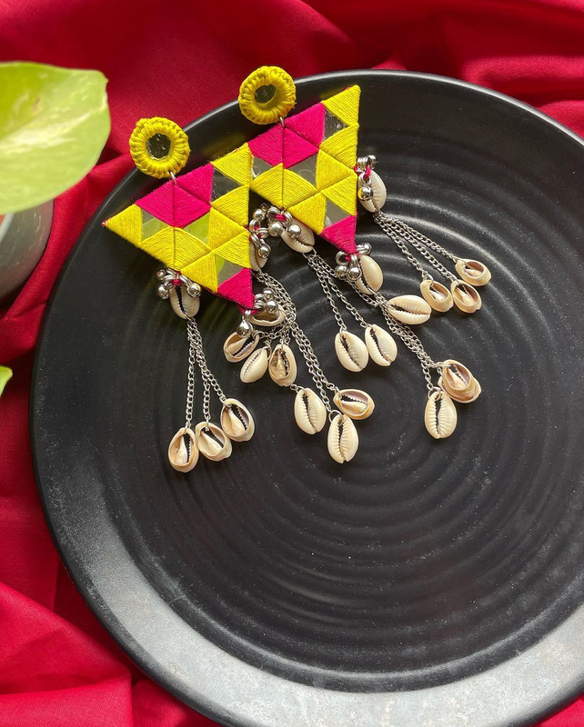 Style your outfit with this our most selling boho handmade mirror Earings and glam your look and any colour customisation you can watsup us 97029 09397